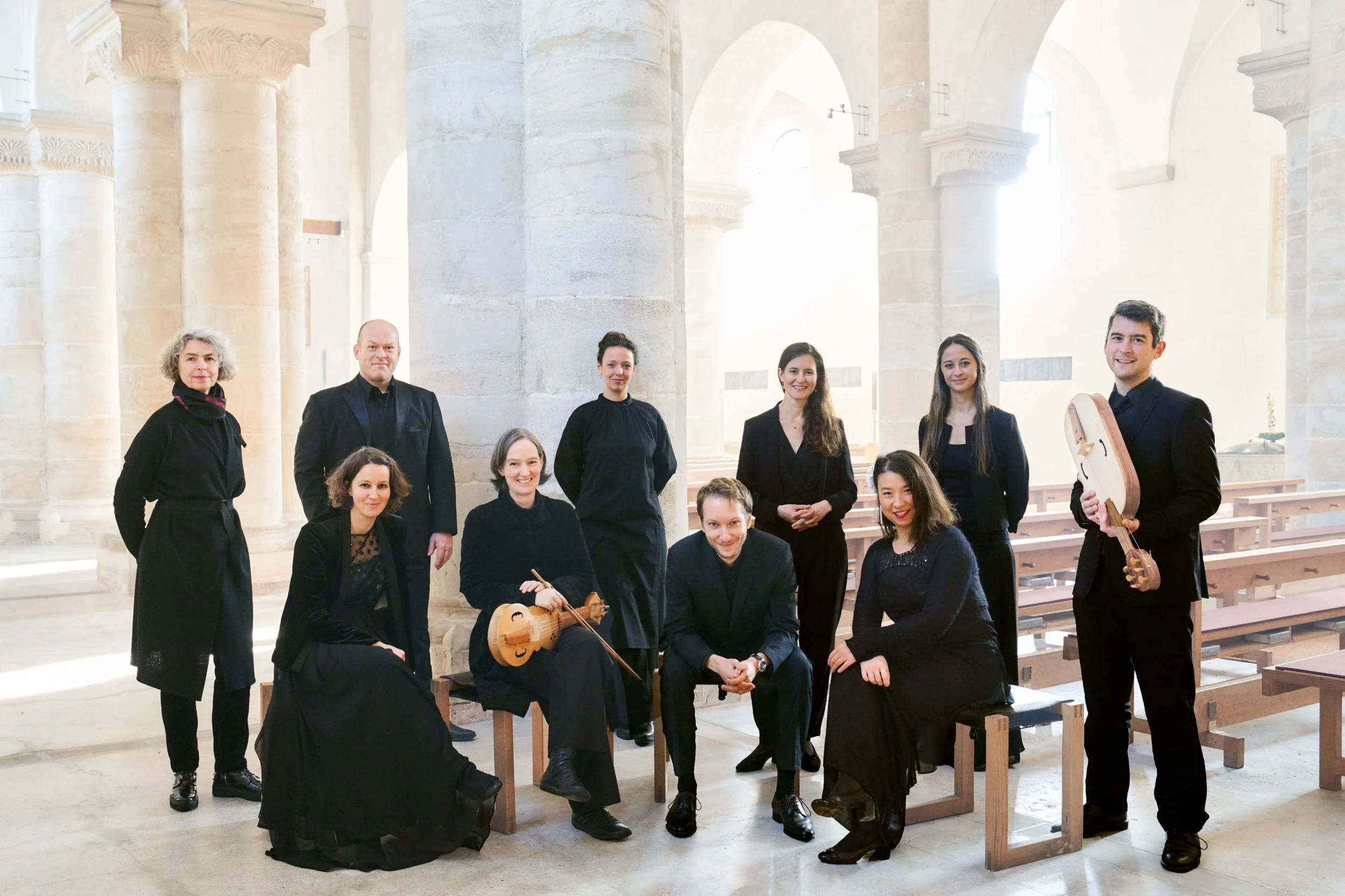The program offers an exciting dialogue between the practice of improvised counterpoint and the more complex, magnificent, and already notated compositions from the Codex Calixtinus. Impromptu improvisations, which are performed individually in the ensemble, provide many a surprise and become an experience for musicians and audience alike. The notated polyphonic organa point in a new direction. The result is a smooth transition of traditions and the opening of a new perspective on the roots of occidental polyphony. For the accompaniment of the voices, instruments of the Carolingian period are to be heard.